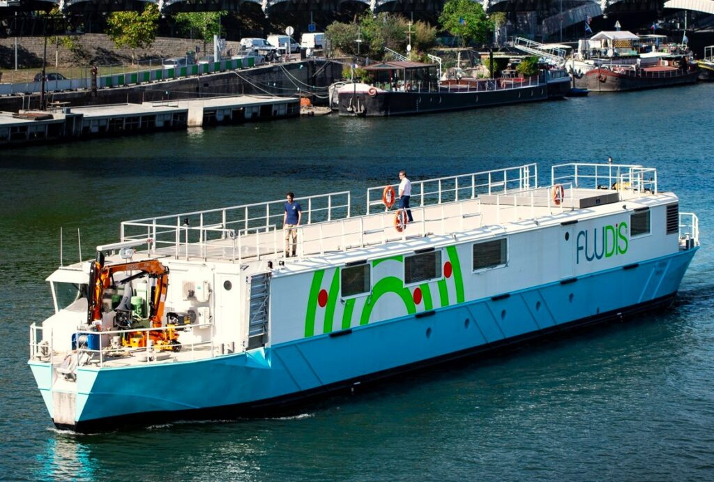ActivitésNos métiersBureau d’étudesConcepteur et opérateur de solutions fluvialesIntégrateur du dernier kilomètreModèles de logistiques urbainesEspaces de logistique urbaineEspaces de logistique urbaine multimodaleTransport fluvial urbain Espaces de logistique urbaine multimodale FLUDIS est spécialisé dans la conception et l’exploitation d’espaces logistiques hybrides : ce sont des outils fluviaux qui allient surface logistique et moyen de transport tout en facilitant le dernier kilomètre à vélo-cargo. Ces barges et ces bateaux relient la périphérie au centre-ville grâce à la voie fluviale. Ces unités fluviales sont composées d’espace logistique pour le stockage et le dégroupage des marchandises mais également de bureaux, de salle de pause, de stockage et de rechargement des vélos-cargo et de moyen de manutention (grue, monte-charge, transpalette) Nos marchés : les distributeurs, chargeurs, transporteurs et logisticiens Les prestations : Préparation de commandes, dégroupage Mise à disposition de l’espace logistique Transport massifié à bord de nos unités fluviales Livraison du dernier km en cyclologistique Les marchandises : Colis, palettes Sec, température dirigée, déchets Concrètement, nous réceptionnons les marchandises massifiées en périphérie du centre ville puis nous gérons le dégroupage pendant la navigation. Une fois accostée en centre-ville, notre unité fluviale fait débarquer les vélos-cargo préalablement chargés des marchandises. La journée se poursuit au rythme des tournées de livraison de nos vélos-cargo entre l’unité fluviale et les clients.